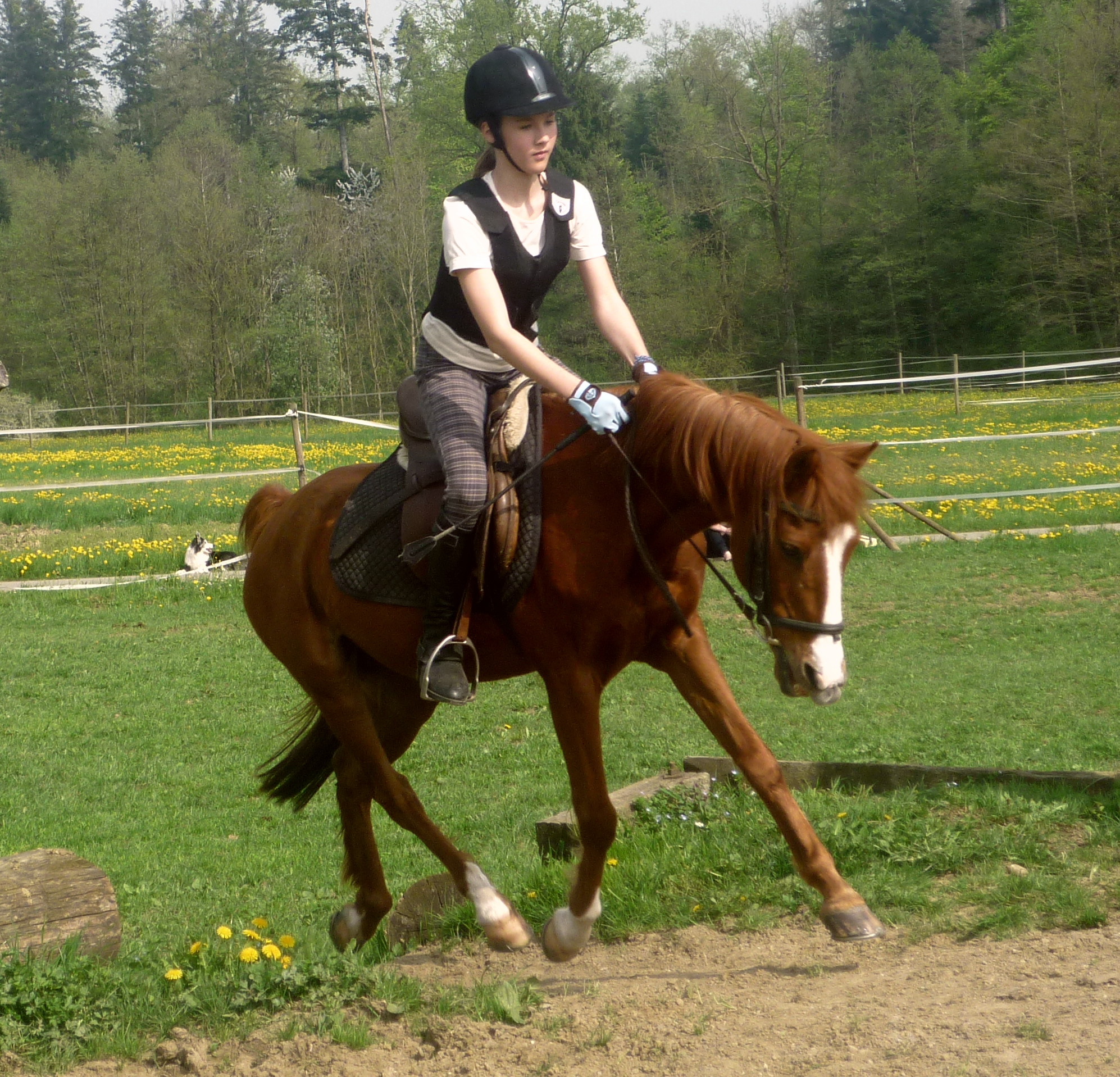 Cooper hat ein Stockmass von 131 cm. Er ist ein williges und springfreudiges Pony, manchmal etwas übereifrig, hat eine gute Springmanier und viel Vermögen. Im Parcours ist er aber nicht ganz einfach zu reiten, da er nicht gerne alleine ist. In der Reitstunde ist er brav und kann auch von Anfängern geritten werden.